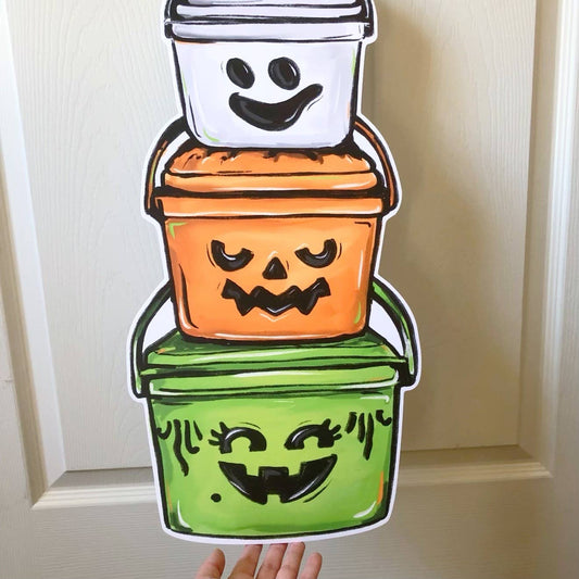 Happy Halloween Buckets Door Hanger Cute Ghost Fall Decor
