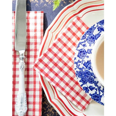 In StockRED PAINTED CHECK COCKTAIL NAPKIN