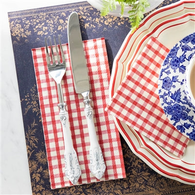 In StockRED PAINTED CHECK GUEST NAPKIN