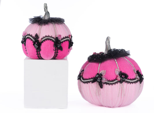 Katherine's Collection Pink Passion Stuffed Pumpkins Set of 2