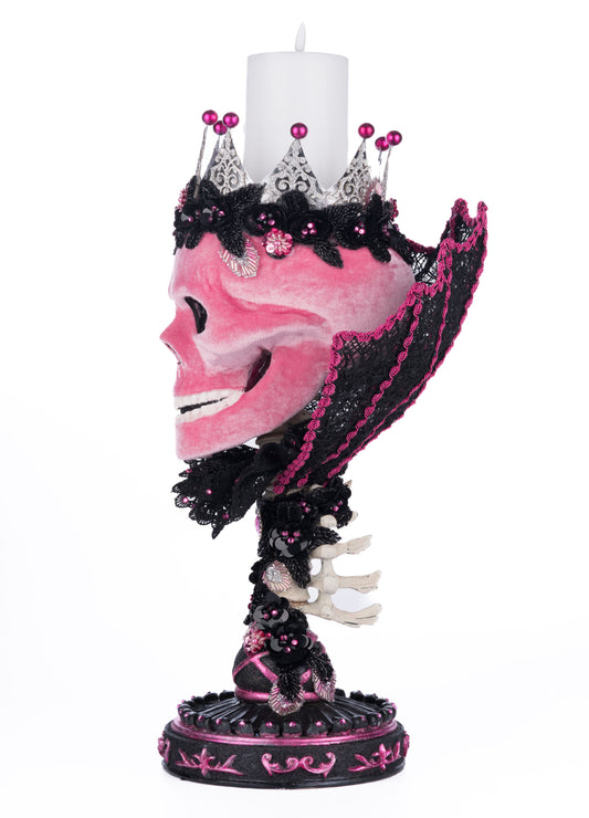 Katherine's Collection Pink Passion Skull Pillar Candle Holder