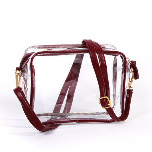 Bridget Clear Purse with Vegan Leather Trim and Straps - Bur
