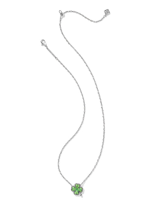 CLOVER SHORT PENDANT NECKLACE SILVER LIME GREEN MAGNESIT