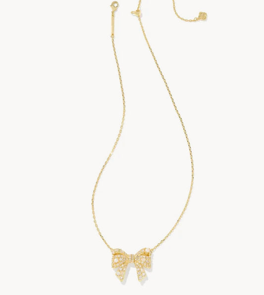 KRISTA BOW SHORT PENDANT NECKLACE GOLD WHITE MIX