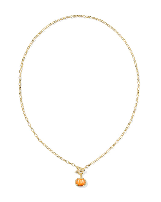 PUMPKIN LINK AND CHAIN NECKLACE GOLD ORANGE MOTHER OF PEARL