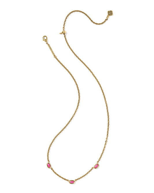 MINI ELISA THREE STONE STRAND NECKLACE VINTAGE GOLD DARK FUCHSIA VARIEGATED MAGNESITE