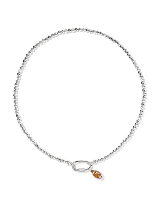 FOOTBALL METAL STRAND NECKLACE SILVER WHITE CZ