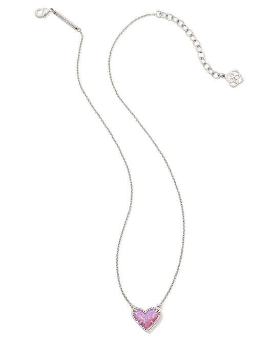 ARI HEART SHORT PENDANT NECKLACE SILVER BUBBLEGUM PINK KYOCERA OPAL