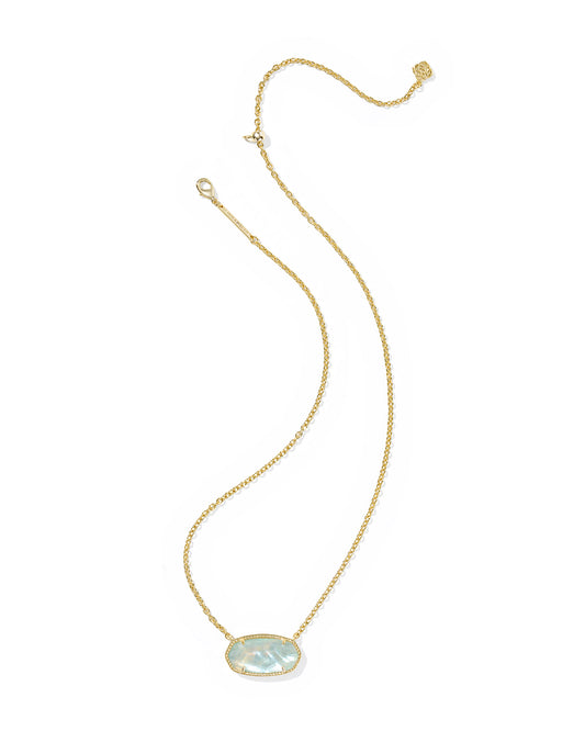 ELISA FIGARO CHAIN SHORT PENDANT NECKLACE GOLD IRIDESCENT ABALONE