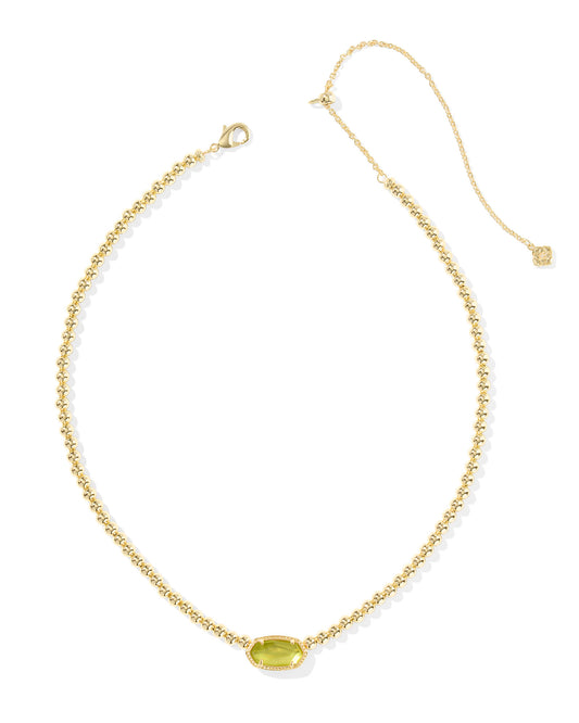 ELISA BEADED NECKLACE GOLD CHARTREUSE GREEN MOTHER OF PEARL