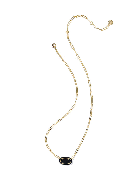 ELISA ENAMEL FRAME PAPERCLIP NECKLACE GOLD BLACK AGATE