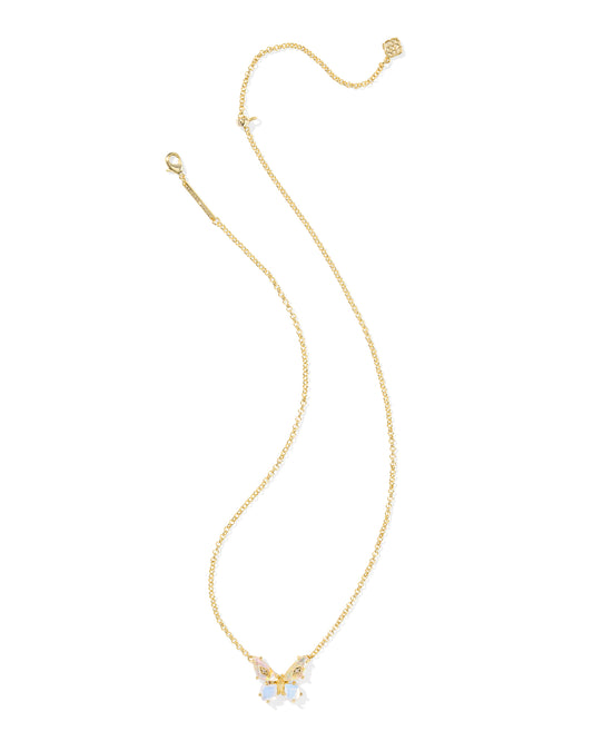 BIANCA BUTTERFLY SHORT PENDANT NECKLACE GOLD IRIDESCENT WHITE MIX
