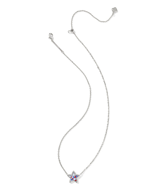 CASSIDY SHORT PENDANT NECKLACE SILVER RED WHITE BLUE STAR ILLUSION