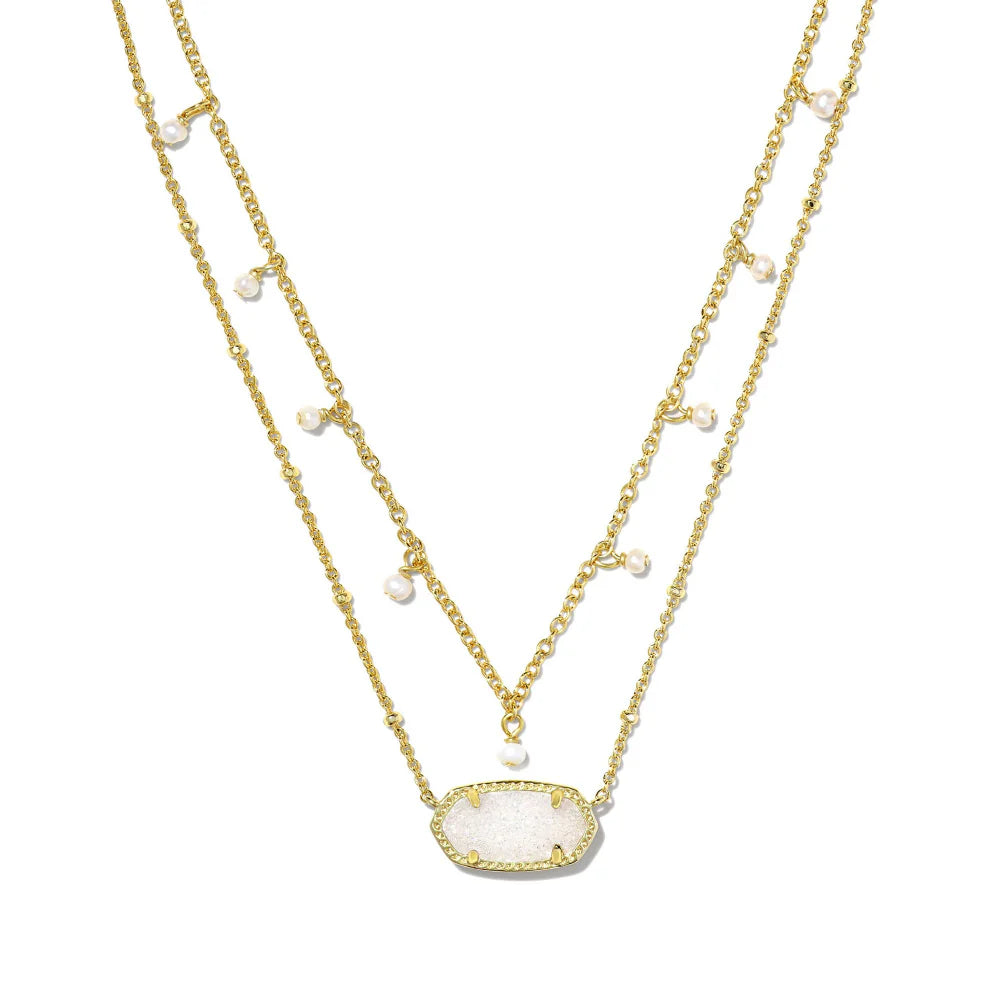 ELISA MULTI STRAND NECKLACE GOLD IRIDESCENT DRUSY