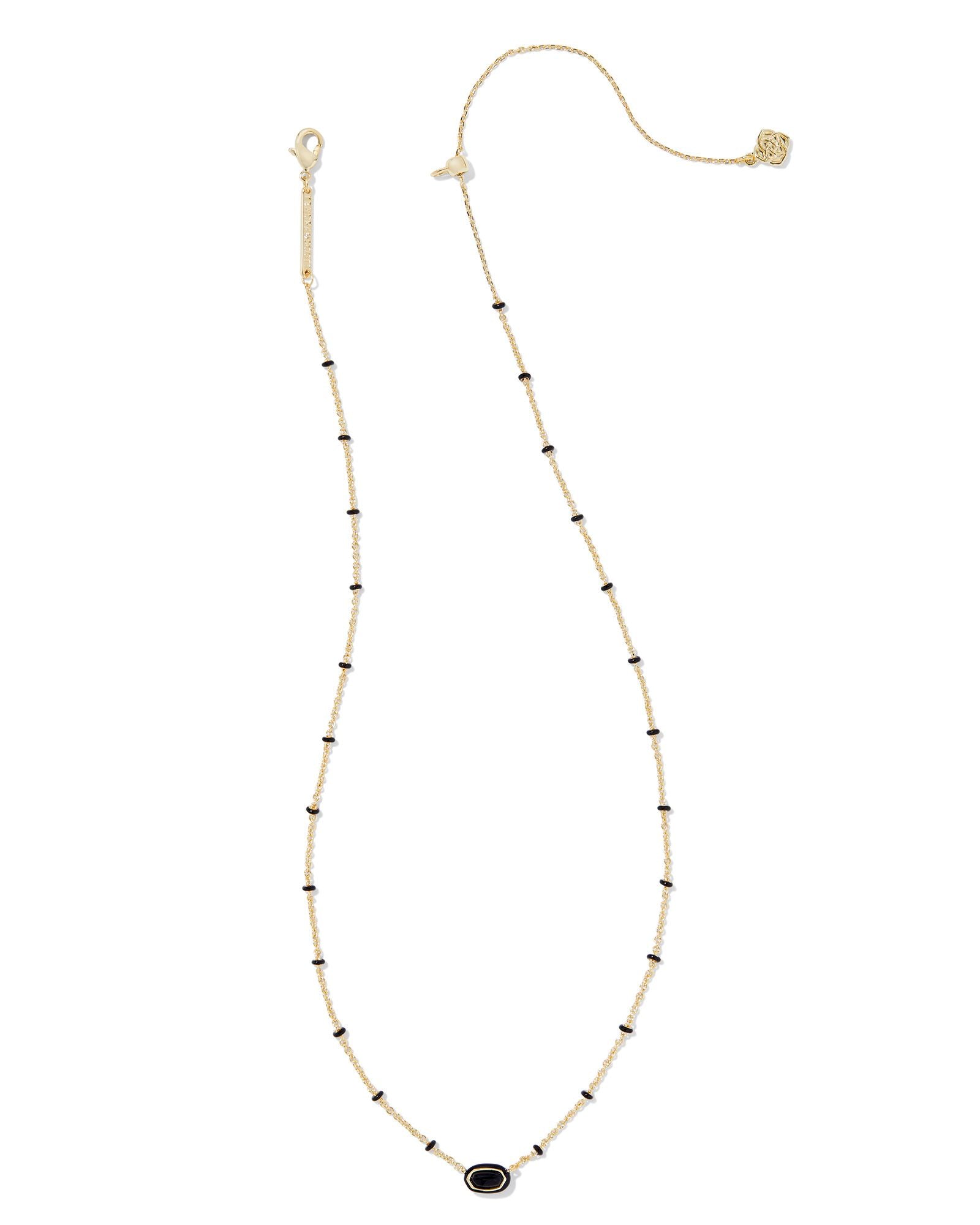 MINI ELISA ENAMEL FRAME SHORT PENDANT NECKLACE GOLD BLACK AGATE
