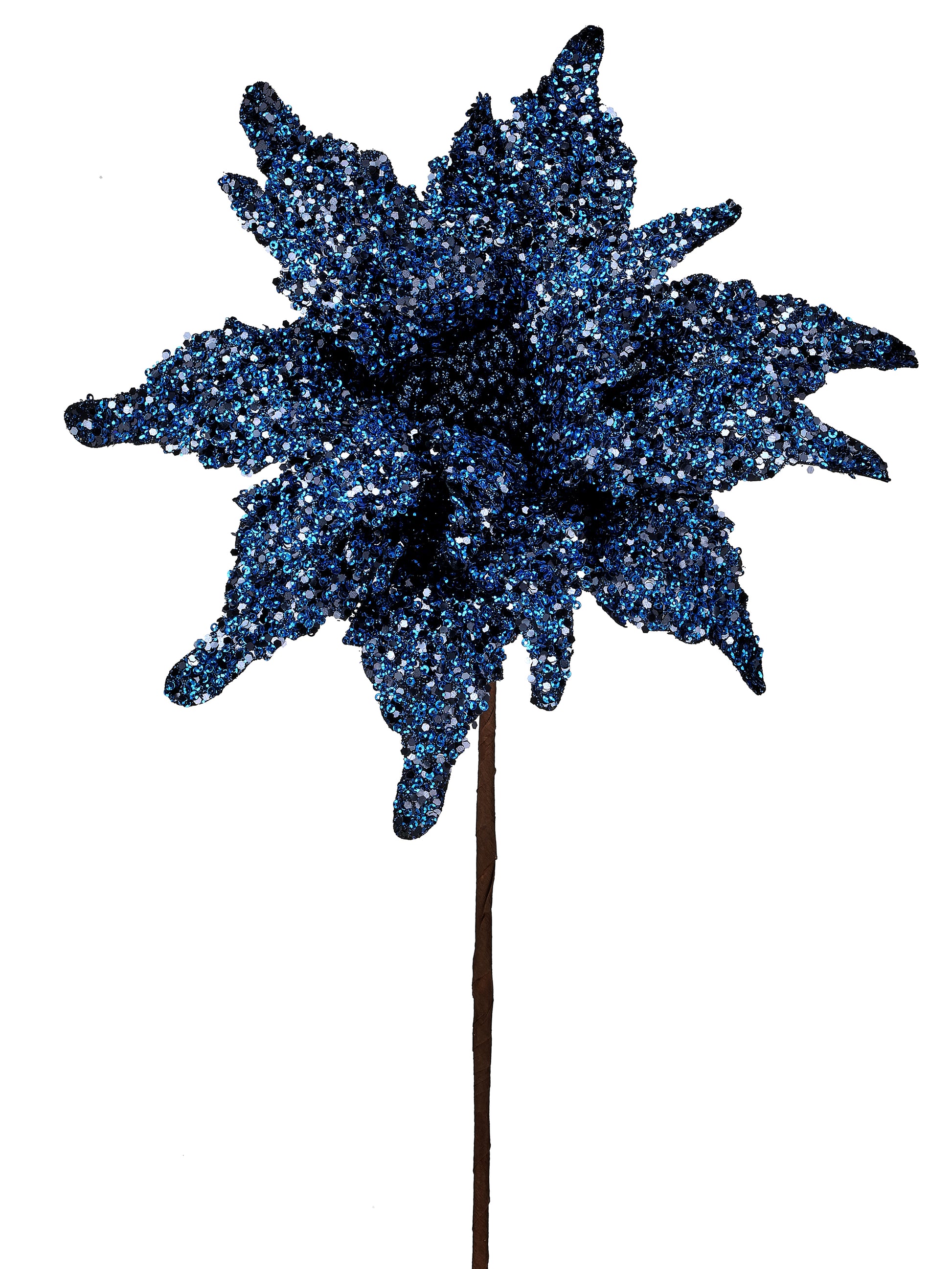 BLUE SEQUIN GLITTER POINSETTIA STEM