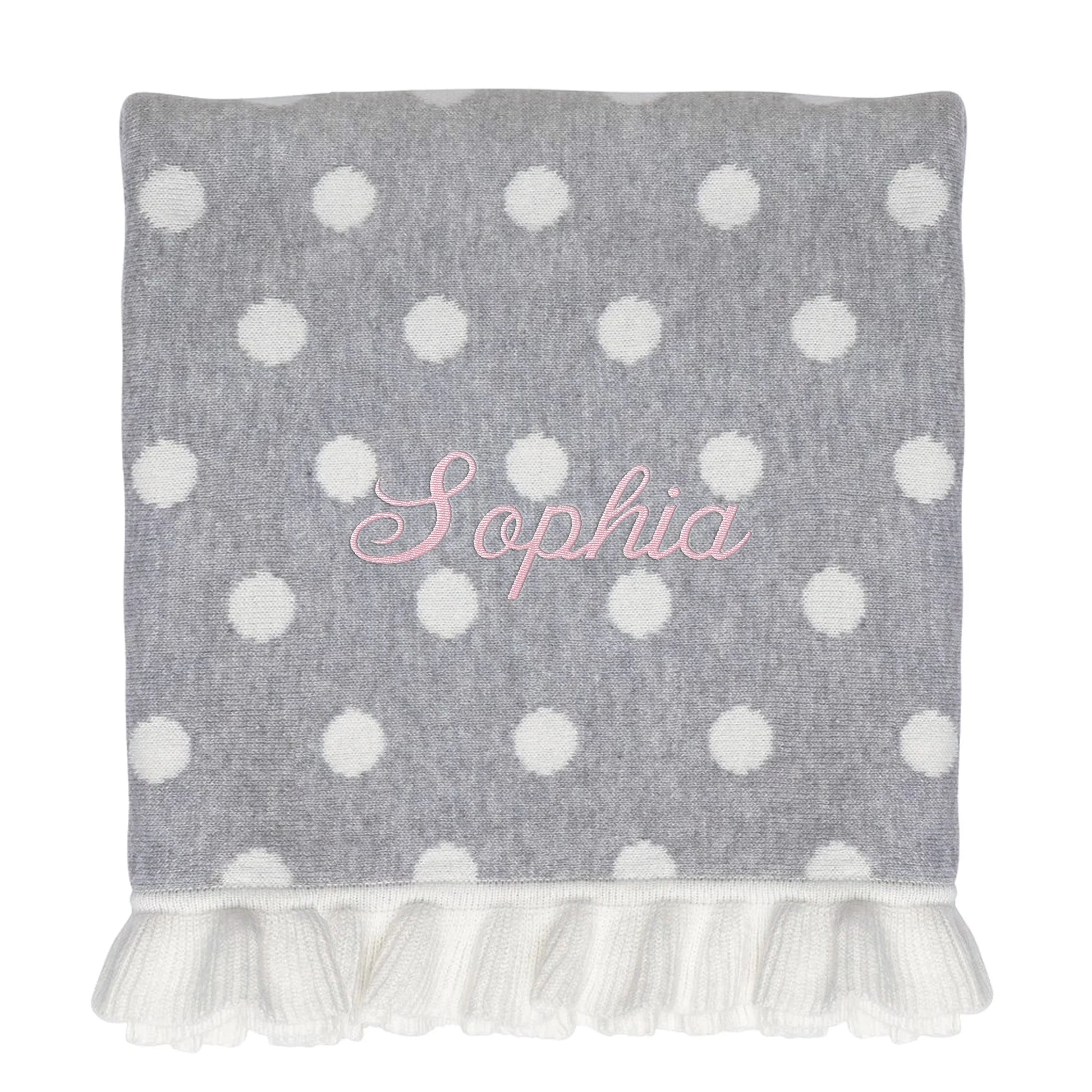 GRAY POLKA DOT RUFFLE COTTON BABY BLANKET