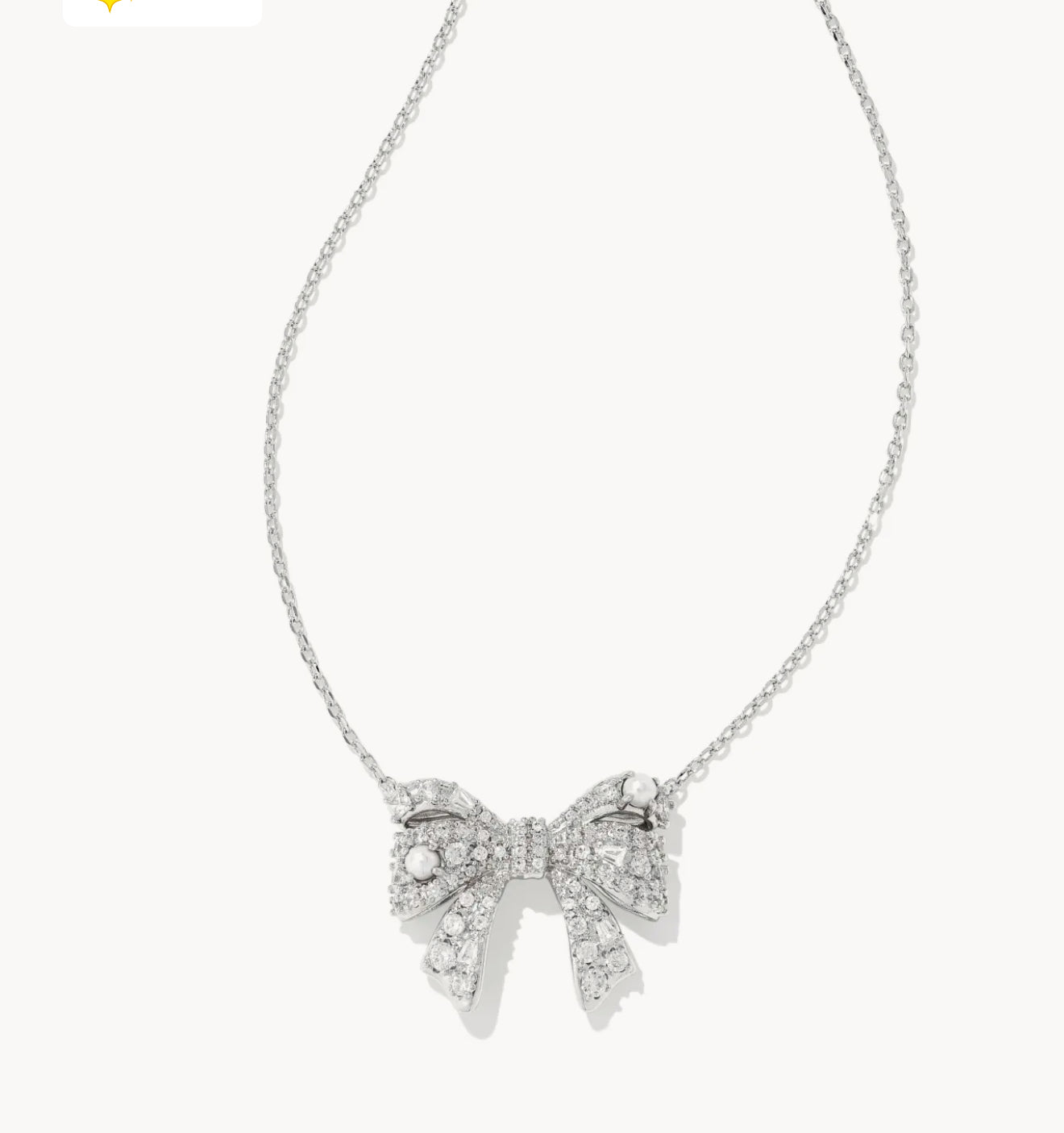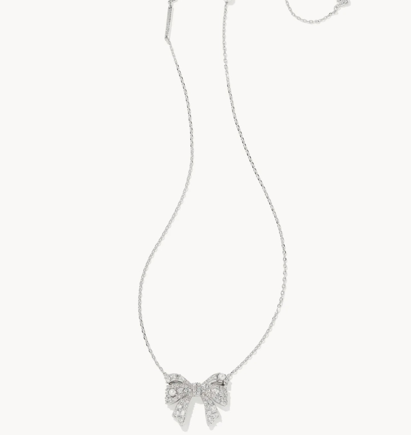 KRISTA BOW SHORT PENDANT NECKLACE SILVER WHITE MIX