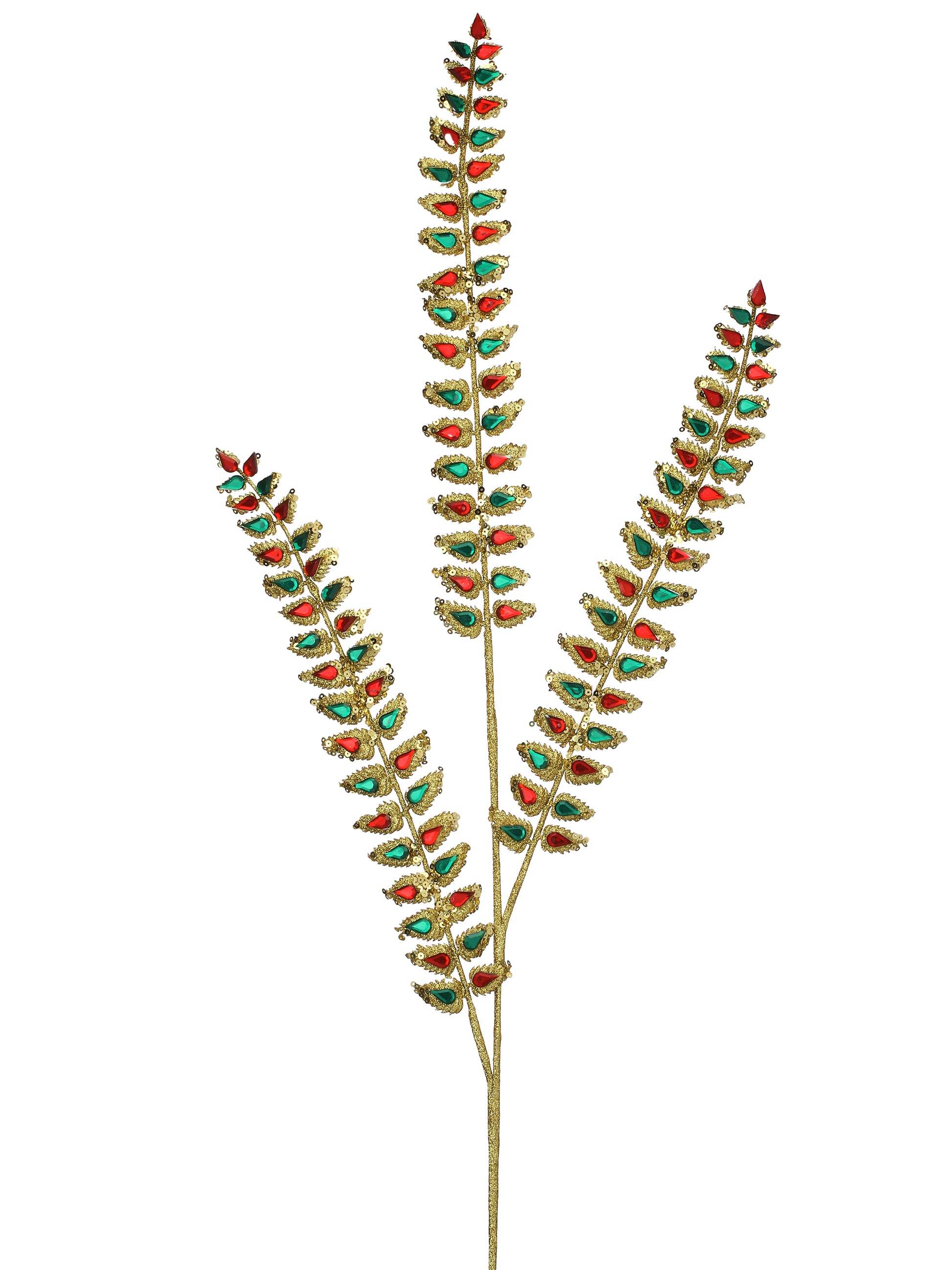 JEWELED LONG LEAF SPRAY RED/GREEN/GOLD
